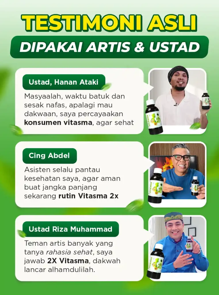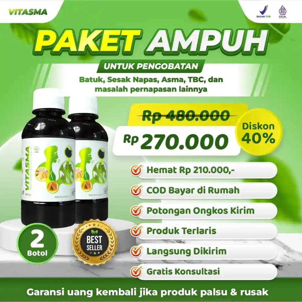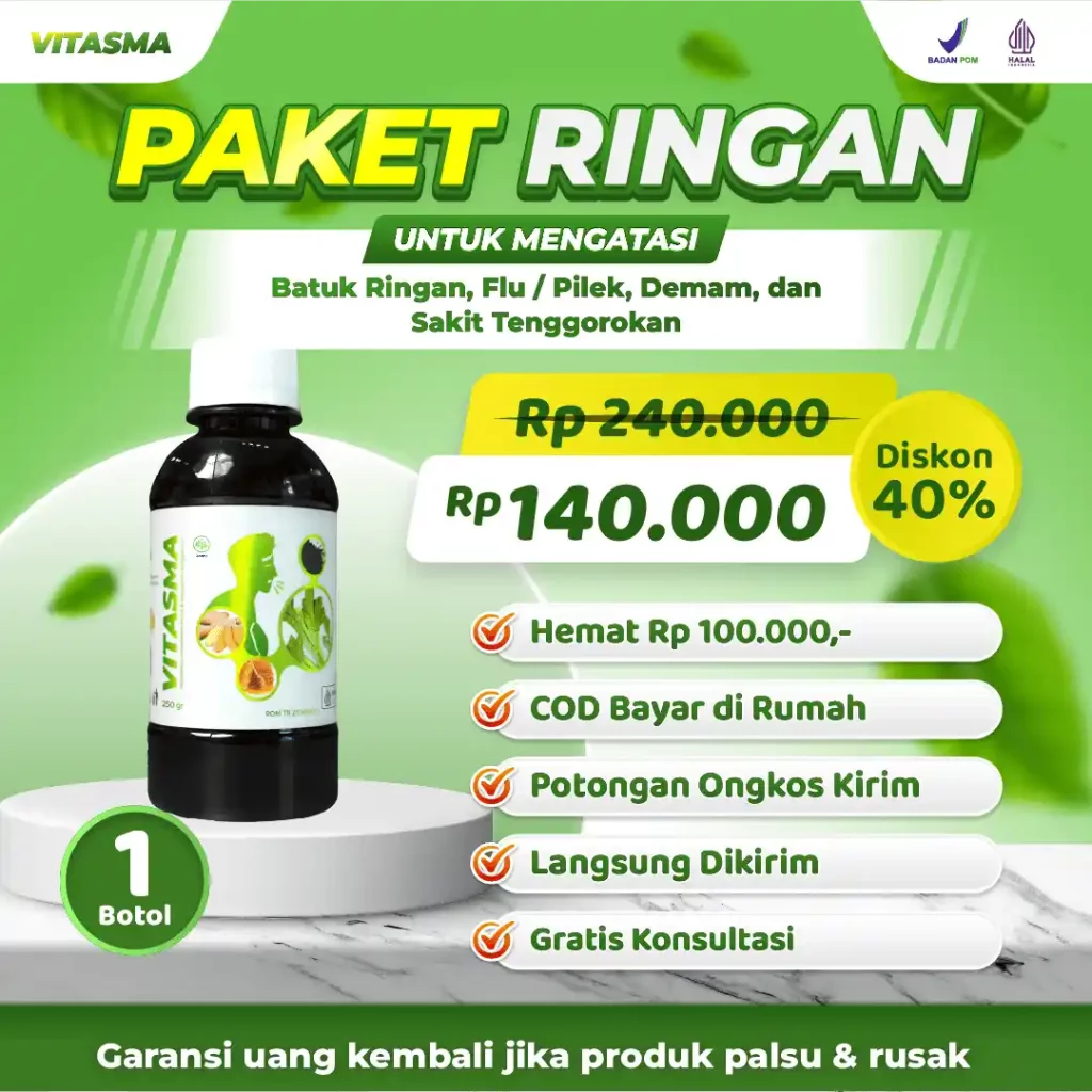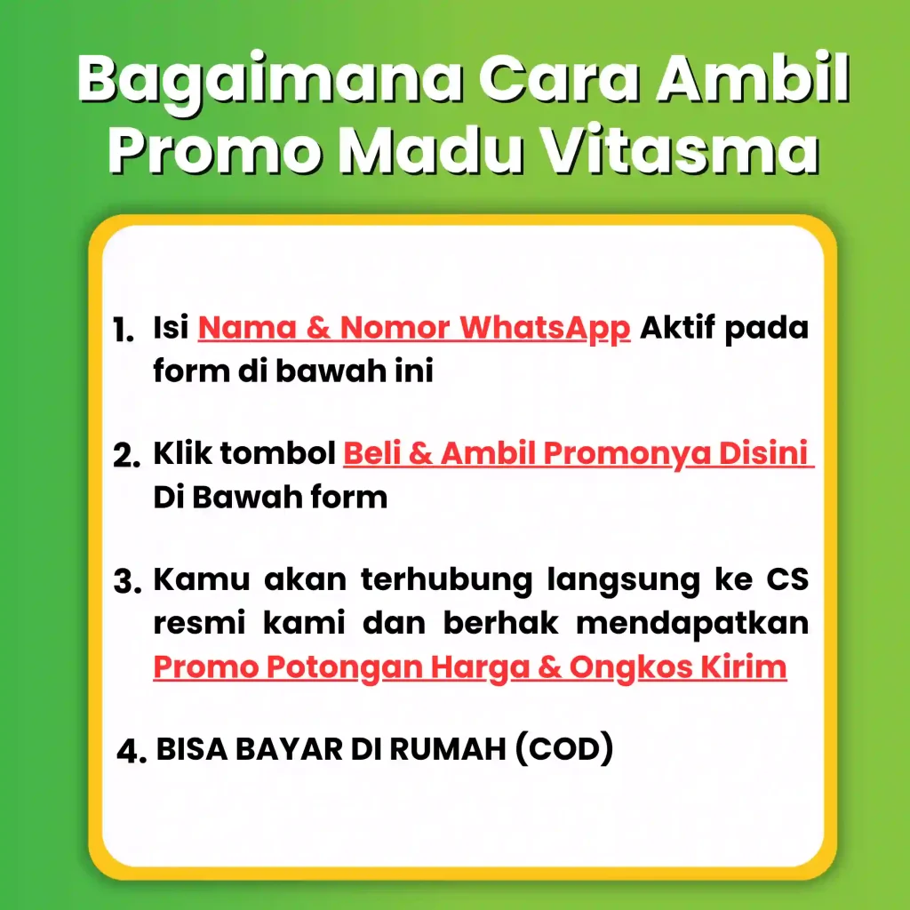 Madu vitasma, persembahan berkualitas dari bahan herbal alami pilihan kualitas premium yang kaya akan Antioksidan Aktif, Asam Fenolik, Fitonutrien & Flavonoid yang terbukti 4X Lebih Ampuh Mengatasi Batuk Menahun, Sesak Nafas, & Masalah Pernafasan lainnya secara alami, sehat dan tanpa efek samping.